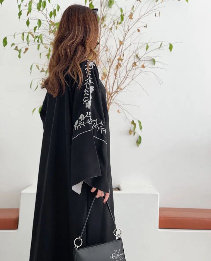 عبايه كريب كتان +شك يدوي خرز
