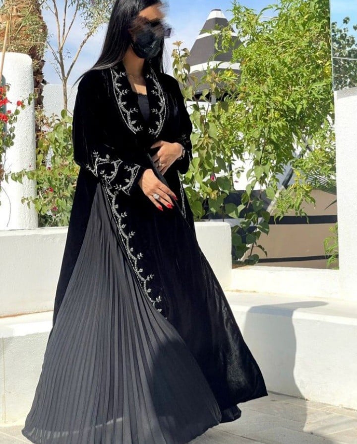 عبايه مخمل اسود شك يدوي +تكسير من الجوانب